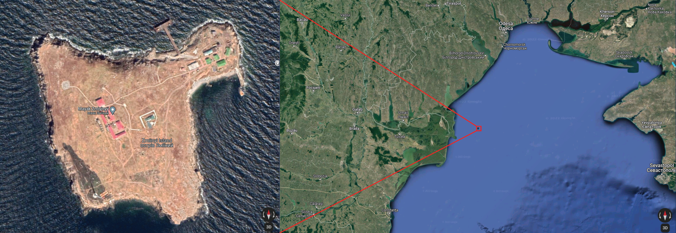 Ostriv Zmiinyi (Ukrainian for Snake Island) is a tiny island in the Black Sea, just off the coast from the Danube Delta. See the satellite image below, from Google Maps. In normal times, the island is home to about 30 people who work at either at a scientific research station.