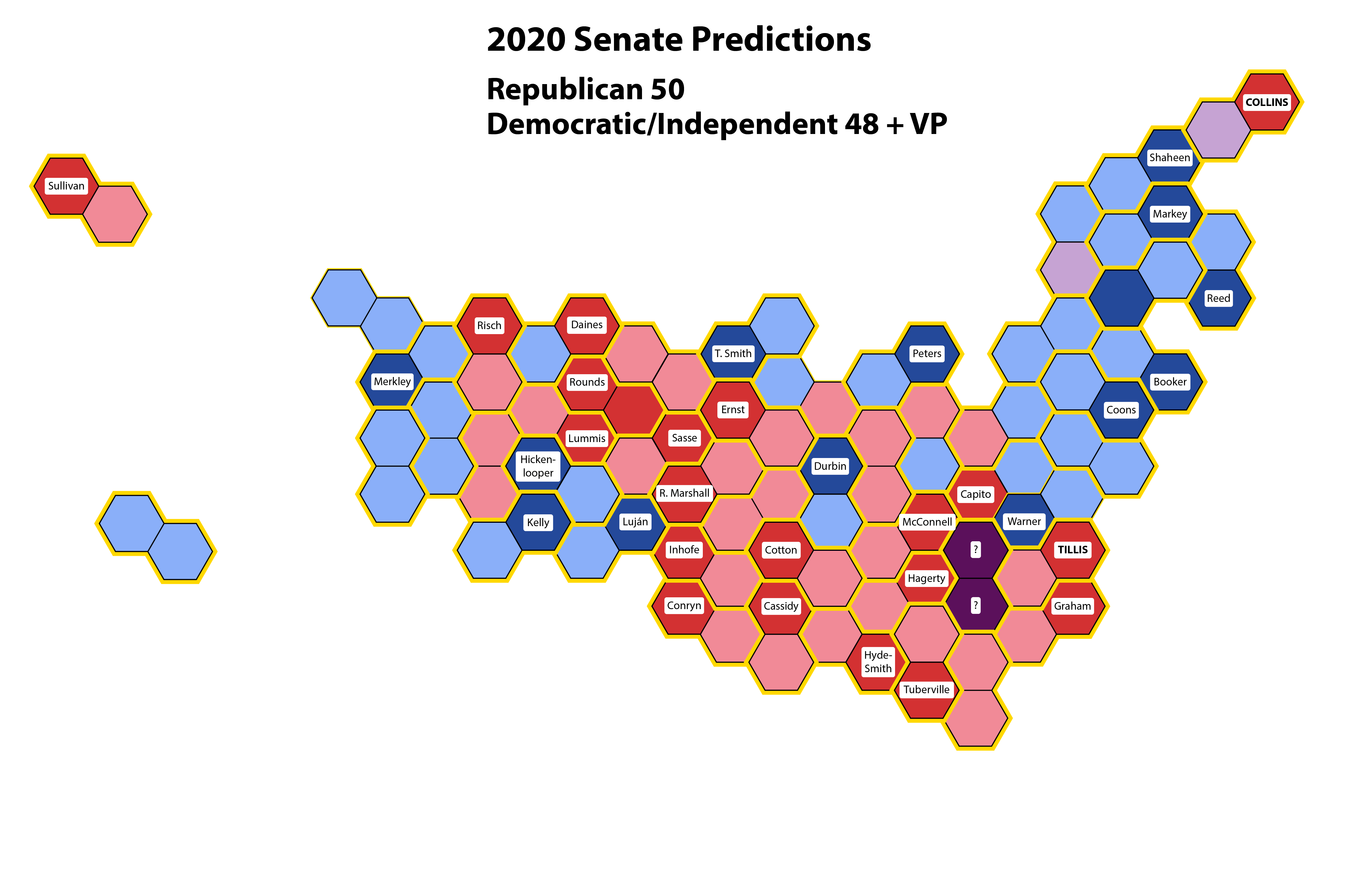 Not counting my as-yet-unconfirmed Georgia predictions, I missed on two, both Republican incumbents. In North Carolina, Thom Tillis (R-NC) beat lawyer Cal Cunningham; in Maine, Susan Collins (R-ME) beat state house speaker Sara Gideon.