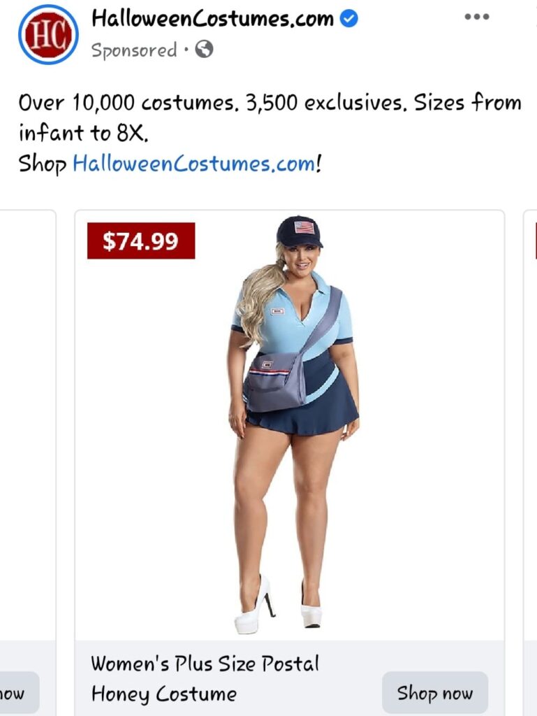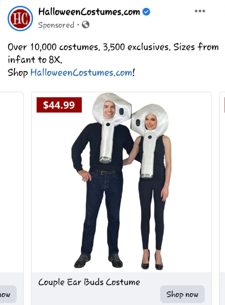 Aimee sent this to me by private message so that she wouldn’t get sent to Facebook Jail. At first I wondered why a simple sheet-for-a-ghost Halloween costume would get her suspended.