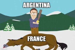 Best game: The final. Argentina led 2-0 at halftime after dominating the first half so much that I posted this dead horse meme with labeled the horse “France.” Hahahahaha that seemed like a good idea at the time.